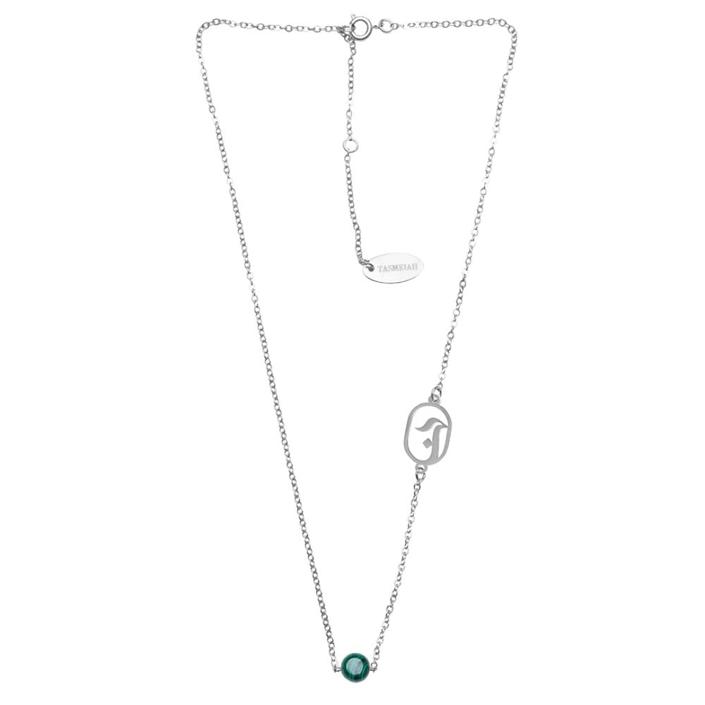 تجمع سلسلة حجر الملاكايت بين الفخامة والبساطة في تصميمها، مما يجعلها قطعة مثالية لجميع الأذواق والمناسبات ومطعمة بحرف من اختيارك لتزيد جماليتها